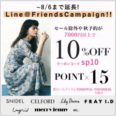 HAPPY SUMMER CAMPAIGNスタート♪★7000円以上でなんと11%OFF&ポイント15倍★セールも秋アイテムも対象♪~8/11