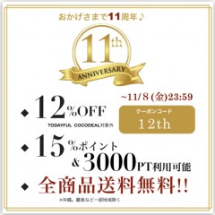 【11/16まで延長中!!】☆おかげさまで12周年☆ご愛顧に感謝して周年キャンペーン!!秋冬新作もなんと12%OFF&15倍POINT!さらに全商品送料無料♪