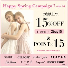 HAPPY SPRING CAMPAIGNスタート★ まとめ買いでなんと15%OFF&ポイント15倍還元♪新作も予約もセールも対象♪