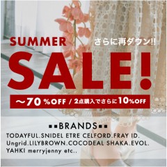 さらに再ダウン【 2023 SUMMER SALE!! 】MAX70%OFF!! 2点購入でさらに10%OFF♪ 秋まで着れるアイテムも多数