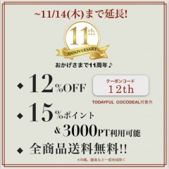 好評につき延長決定★11周年感謝祭【7000円以上で12%OFF&ポイント15倍】さらに!!3000PTまで利用可能&送料無料に♪