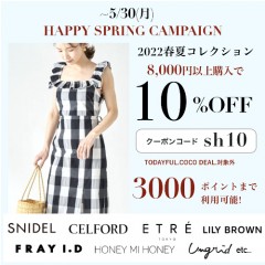 【 HAPPY SPRING CAMPAIGN スタート】2022 春夏コレクションが8,000円以上のお買い物で★10%OFF!!★&なんと【3000ポイント利用可能】