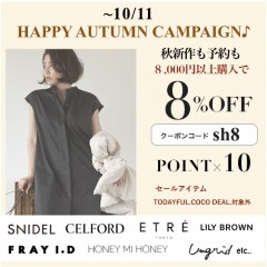 【 HAPPY AUTUMN CAMPAIGN START】SNIDEL.ETRE.CELFORDなどの 秋冬新作、予約が8%OFF♪