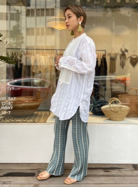 クラシカルなパターン柄シャツはマニッシュに着るのがおすすめ♠