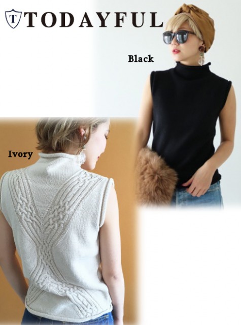 前はシンプルなノースリーブニットですが、バックスタイルはケーブル編で一癖あるニット☆