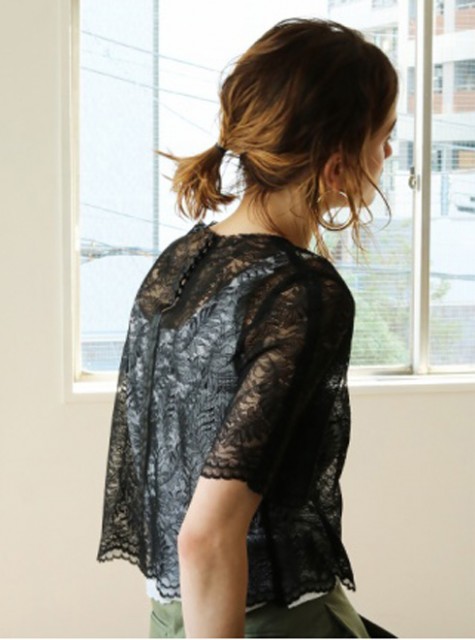 繊細なリーフ柄のレースを使ったシアーブラウスは、その透け感を楽しみたい1着♪