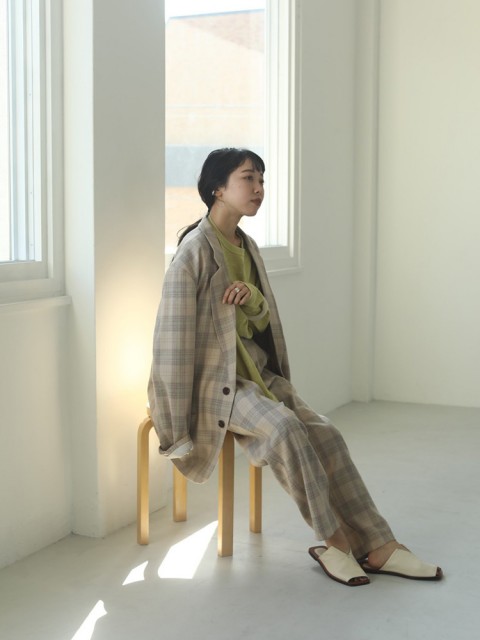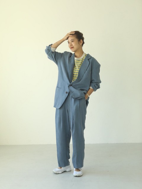 同じ生地を使用したパンツとセットアップでの着用もおすすめです。