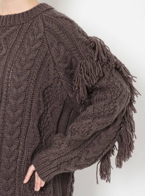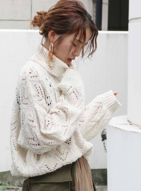 ウール混率の高い糸を使用し、透かし編みを落とし込みながらカジュアルな印象に仕上げた1枚。