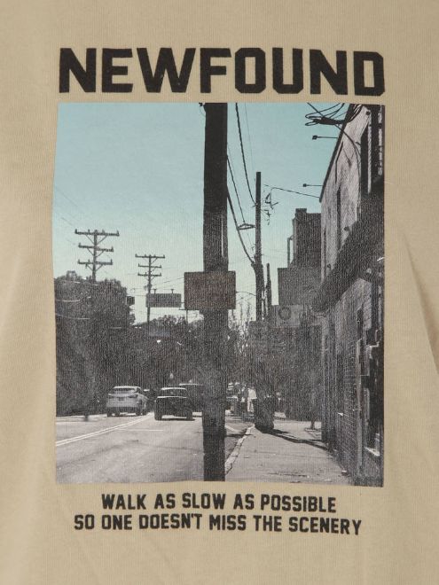 定番のカットソーやロゴTシャツでもスタイリングがお洒落見えに。