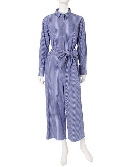 高密素材のシャツ地のウエストベルトのついたオールインワン☆