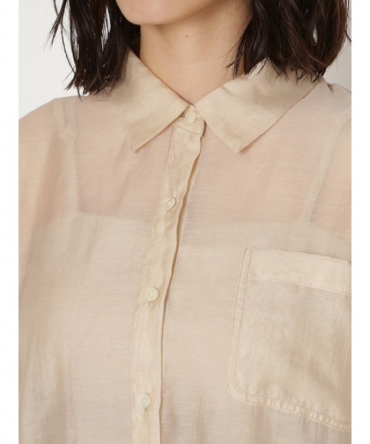 シアーな透け感と光沢あるリネン素材がトレンドを演出するオーバーシャツ