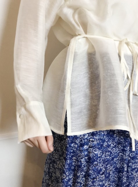 ノーブルなシャツとしてはもちろん、左脇のボタンを留めればカシュクールにもなる2WAY仕様でデザインしました。
